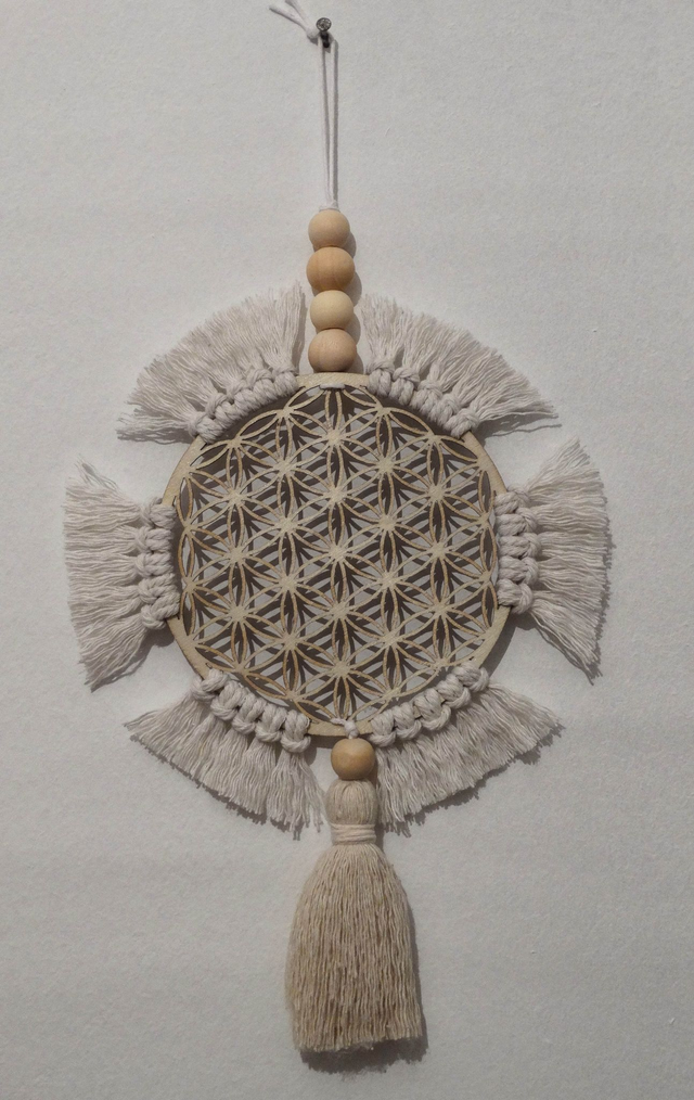 FLEUR DE VIE ornée de fils de macramé et d'un pompon