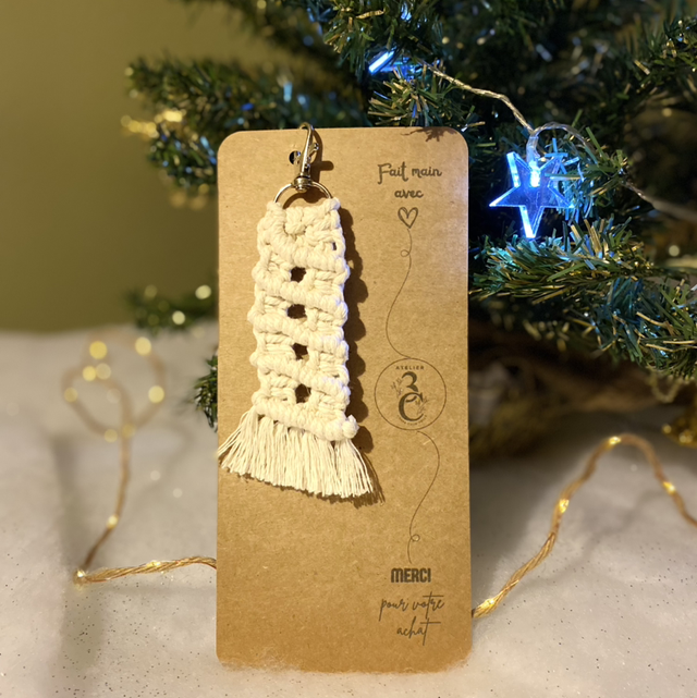 Ce PORTE-CLES en macramé est réalisé avec soin avec des fils de coton de qualité.