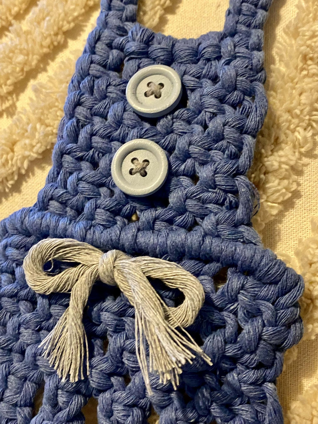 Salopette bleue - Décoration chambre d'enfant en macramé