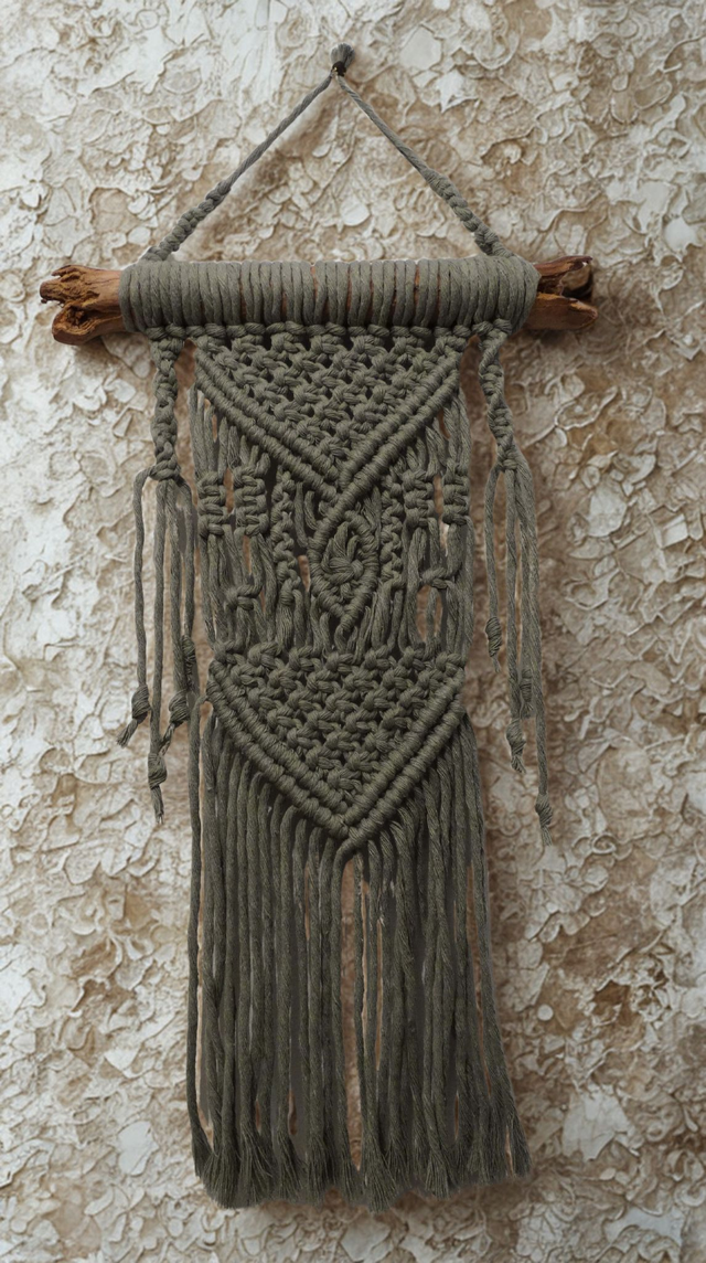 Suspendue à une branche de bois naturel, elle se termine par de longues franges souples, qui donnent du mouvement et une belle légèreté visuelle. Sa teinte naturelle et profonde s’intègre facilement dans une décoration bohème, ethnique ou contemporaine.