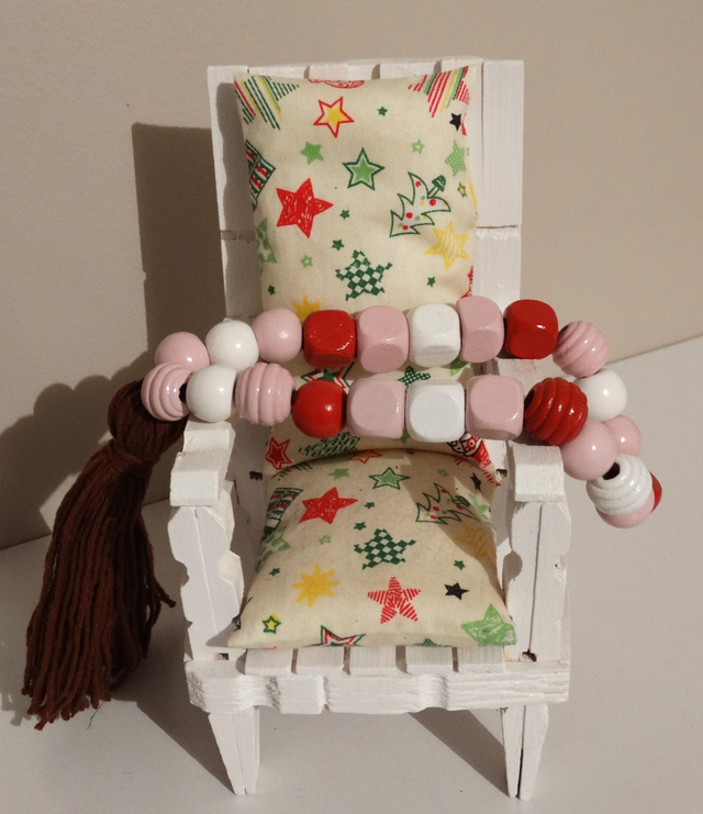 Joli collier décoratif avec des perles de couleur et de formes différentes, orné d'un pompon en laine